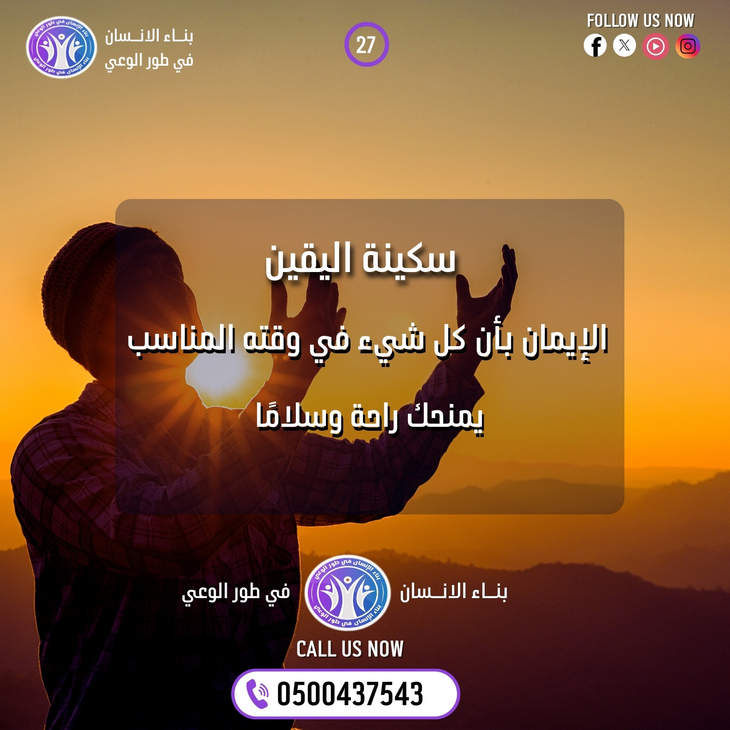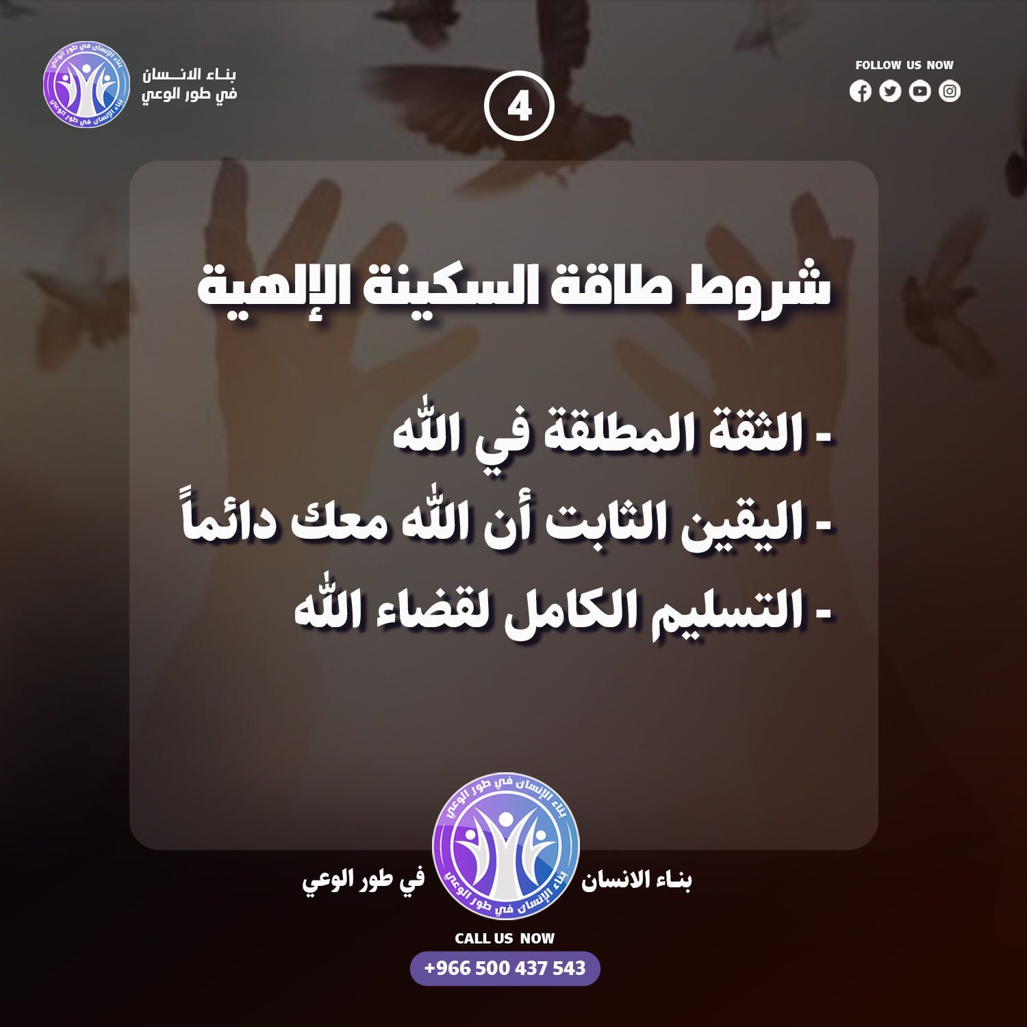 شروط طاقة السكينة الإلهية: الثقة المطلقة بالله، واليقين الثابت، والتسليم الكامل للقضاء